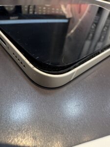 ご相談内容は、iPhone13のバッテリー膨張によりフロントパネルが押し上げられ、液晶が破損してしまった症状です。