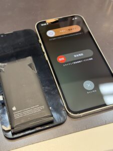 【寝屋川市黒原新町よりご来店】iPhone13 バッテリー膨張による液晶破損の修理